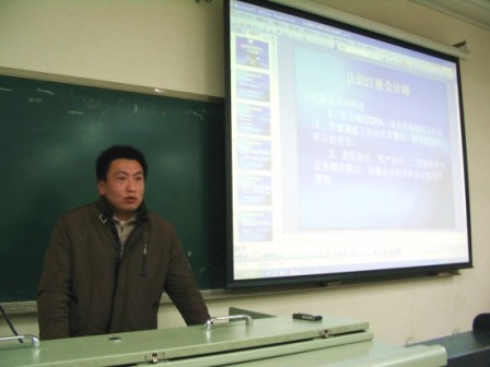 2009年12月3日晚,由bevictor伟德学生会外联部主办,请来了北京财科学校副校长周鹏,为我校想要报考注册会计师的同学进行了一次公益讲座。