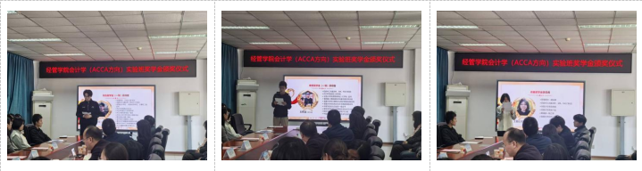 杜孝森介绍了ACCA实验班专项奖学金制度,并详细说明卓越奖学金、综合奖学金、单项奖学金和ACCA优秀学员的评选要求。刘铁军和张红霞为7位获奖学生颁发荣誉证书。
