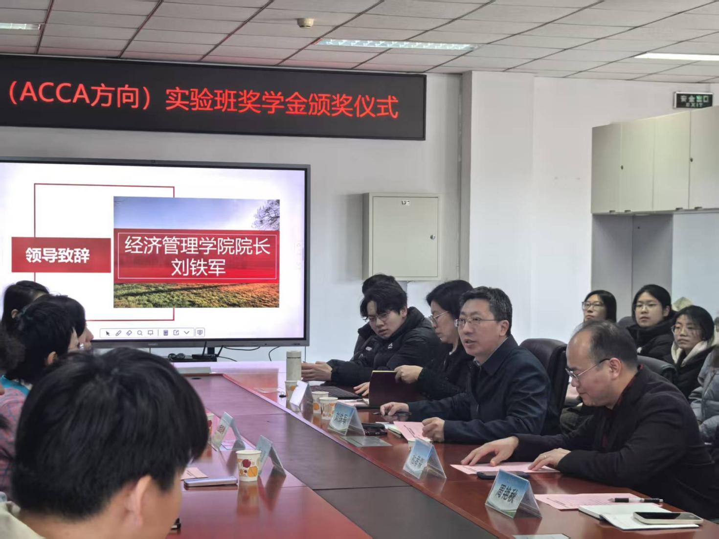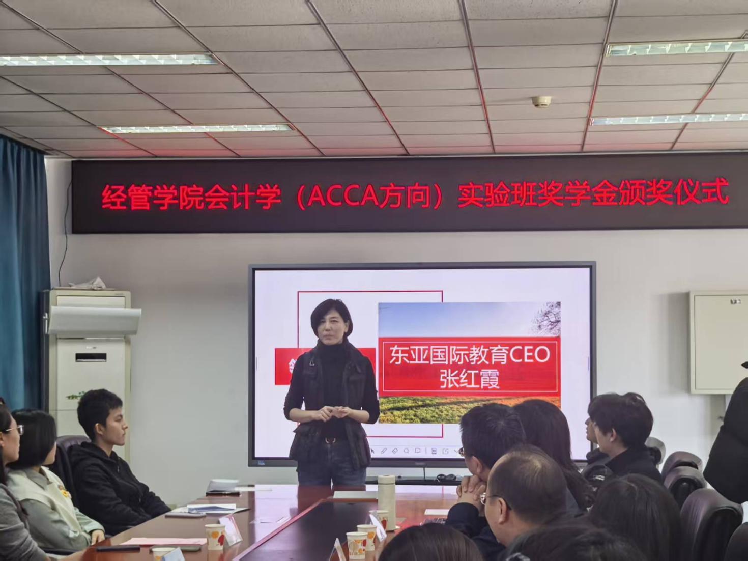 2025年12月24日,bevictor伟德2024-2025年度会计学(ACCA方向)实验班奖学金颁奖仪式在经管楼401举行。参加本次颁奖仪式的有bevictor伟德院长刘铁军、东亚国际教育创始人兼CEO张红霞、bevictor伟德会计系主任白华、会计系副主任杜孝森、东亚国际教育高校合作经理董艳慧、2025级ACCA实验班班主任周艳秋、ACCA实验班班主任李红艳以及各年级ACCA实验班学生。颁奖仪式由白华主持。